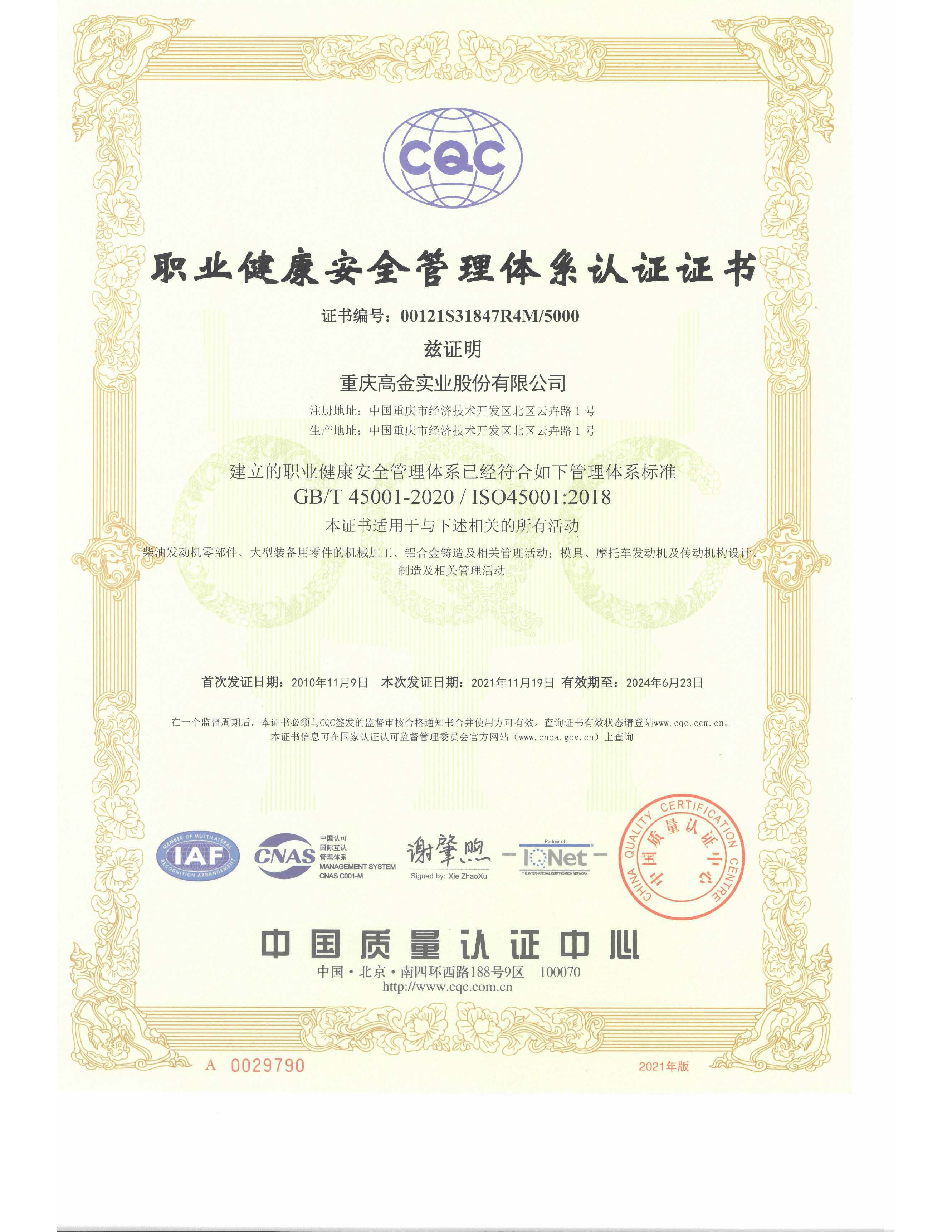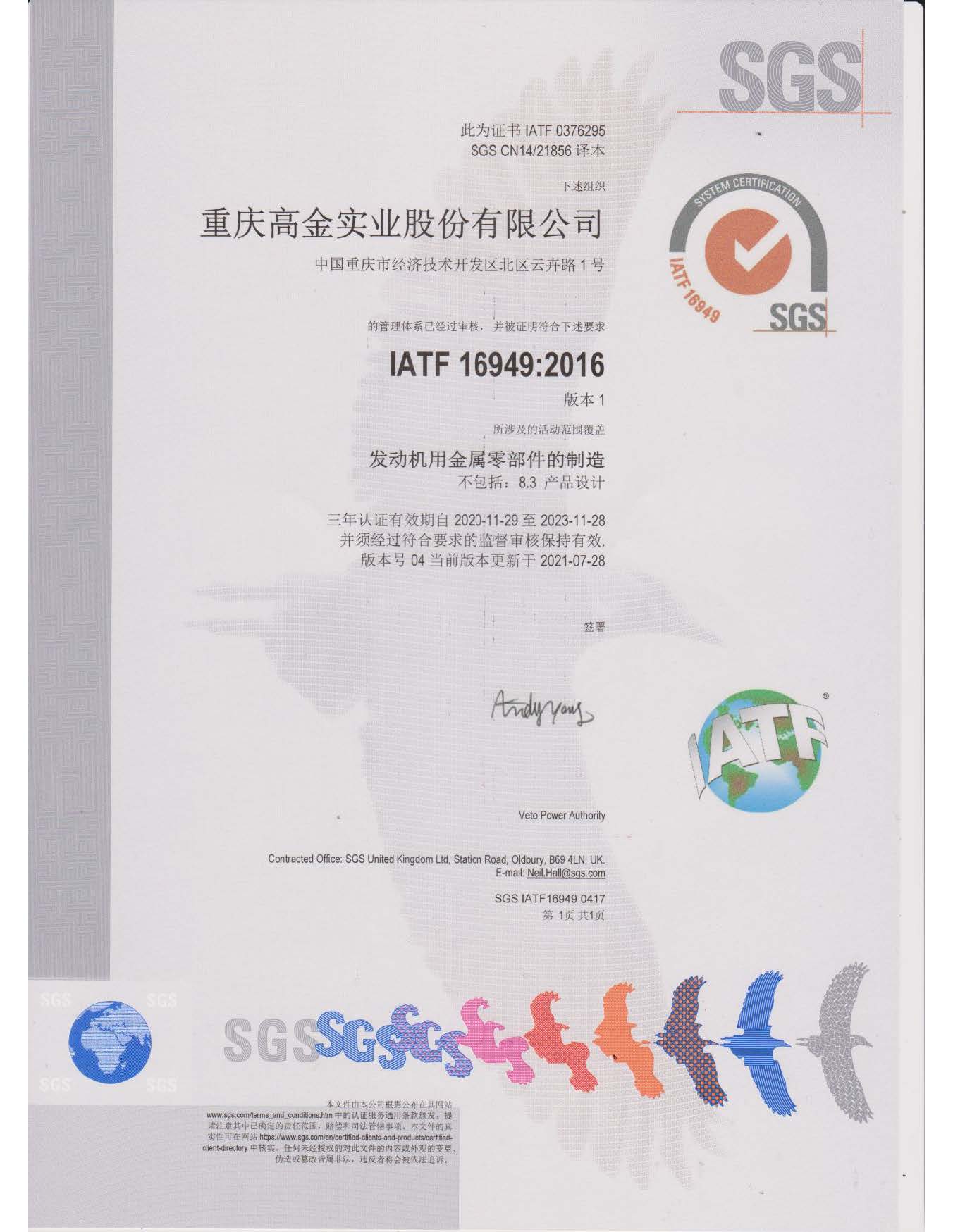 重慶高金實業股份有限公司始建于2006年,位于重慶市兩江新區,距離重慶江北國際機場、重慶寸灘保稅港和重慶火車北站距離均為10公里左右,公司占地面積8萬余平方米,現有員工900余人,其中產品研發人員270余人。主營業務為大排量摩托車整車、摩托車發動機及傳動系統的研發、制造和銷售以及精密機器加工、模具設計與制造、鋁合金鑄造。