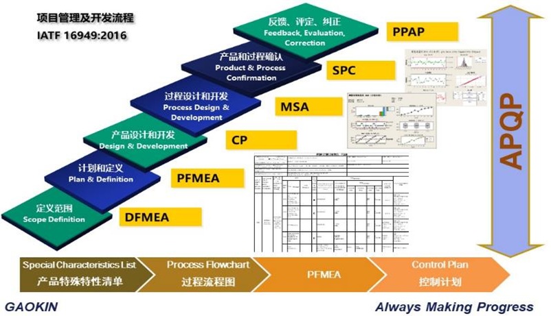 所有項目控制采用APQP流程,從項目成立、組團到樣件提交直至量產,嚴格按照APQP流程執行,量產后如有工程變更或其它變更,嚴格執行變更流程,以確保全過程受控。項目團隊品控技術人員熟練掌握數據統計分析工具,對質量問題運用8D和7步法進行糾正預防措施對策,保證項目持續穩定開展。