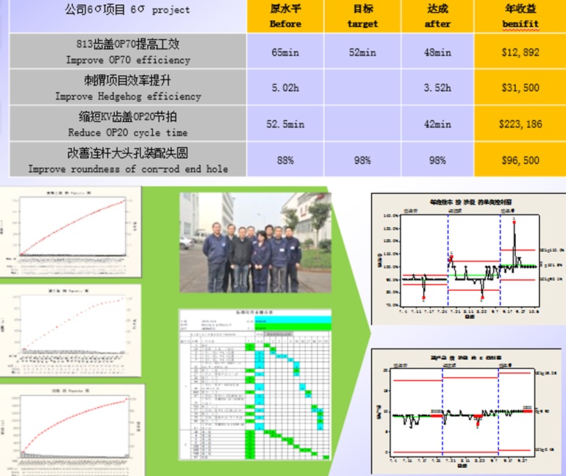 公司擁有六西格瑪黑帶5人,綠帶/黃帶人員20人,運用六西格瑪和精益化生產管理工具,每年對各生產線的產品進行品質改進和效率提升,確保客戶產品質量穩定和成本的降低。