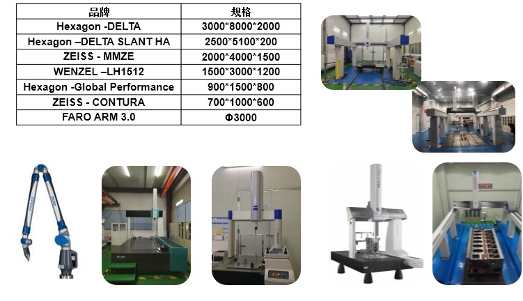 高精度CMM檢測設備7臺,可實現0-8000mm范圍內尺寸的全覆蓋;形狀位置精度等級可達G0.25。