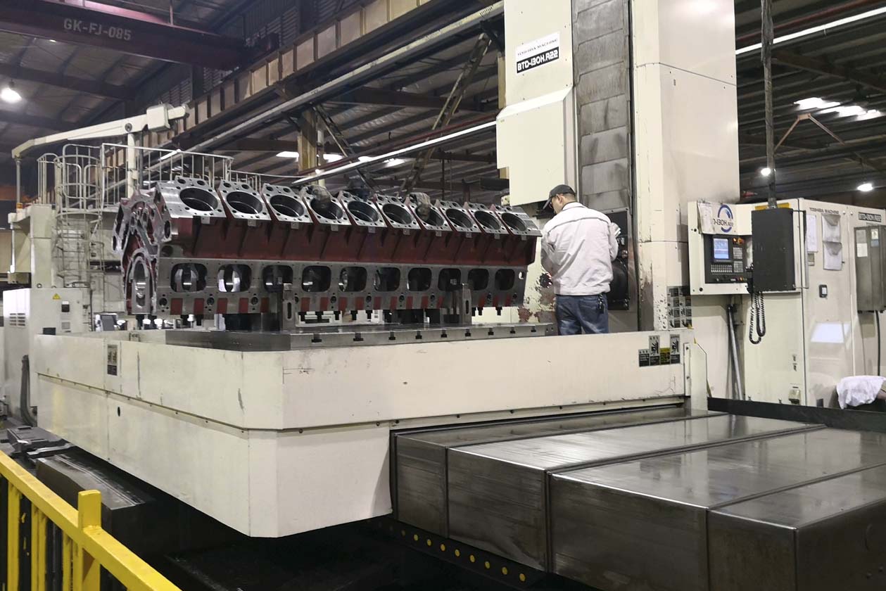 公司專業生產大馬力柴油發動機缸體,從300kg-12000kg。涵蓋L6,V8,V12,V16,V20等型號。每年交付大馬力缸體超過萬臺。